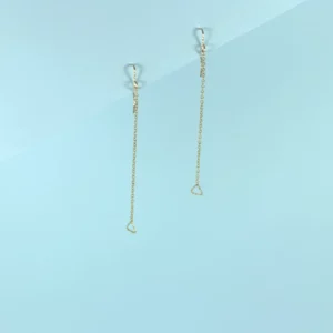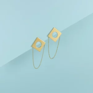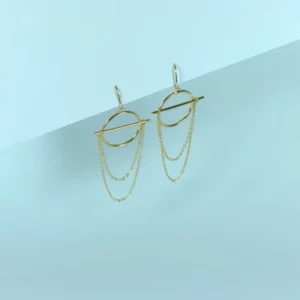 Boucles d’Oreilles, tout en finesse, avec de fines chaînes, de petits triangles scintillants et des attaches texturées qui ajoutent une touche de brillance subtile à chaque mouvement.