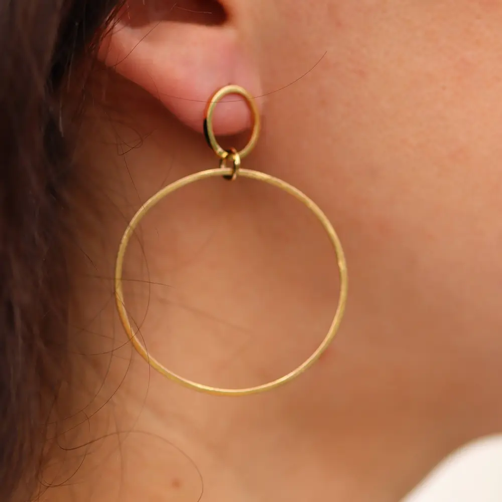 Avec leur design épuré de doubles cercles ajourés, ces boucles d’oreilles légères créent un mouvement subtil et une silhouette contemporaine. Elles sont l’accessoire idéal pour apporter une note chic et discrète à n’importe quel look.