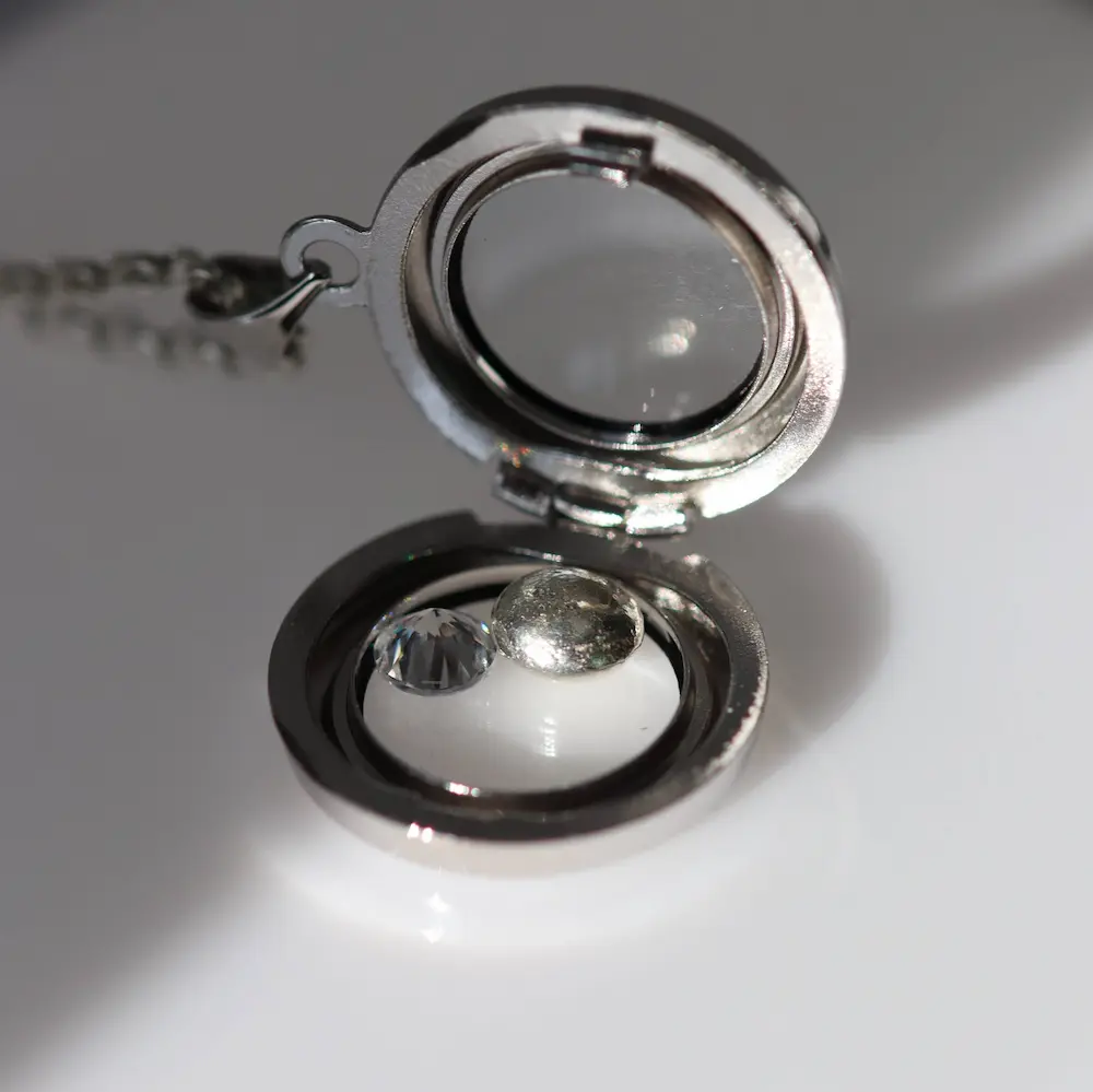 Découvrez le collier « Trésor », un sautoir raffiné. Son pendentif transparent, tel un écrin miniature, s’ouvre pour révéler un duo précieux : une petite pierre éclatante et une pépite d’argent brut. Ce bijou intemporel capture l’attention et invite à la curiosité.